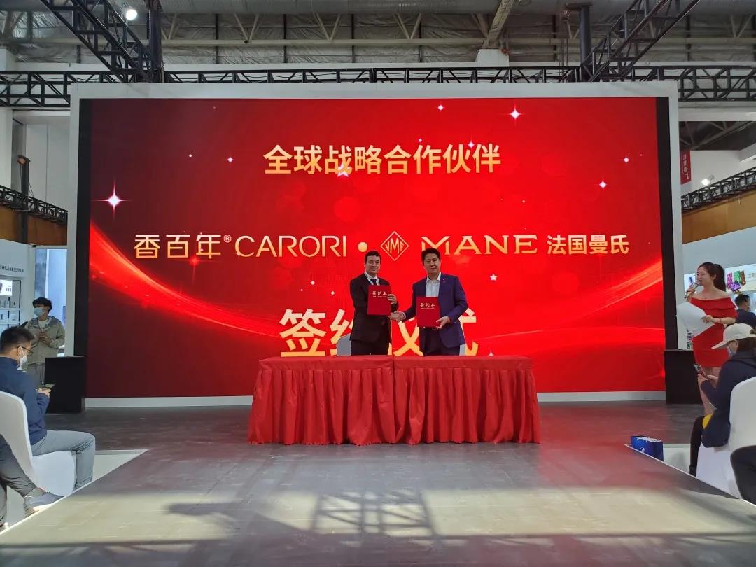 在展會期間,香百年全球戰(zhàn)略合作伙伴香百年CARORI ? MANE法國曼氏簽約儀式圓滿成功!有了曼氏強大的后盾支撐,香百年的香精品質一直以來深受市場好評。